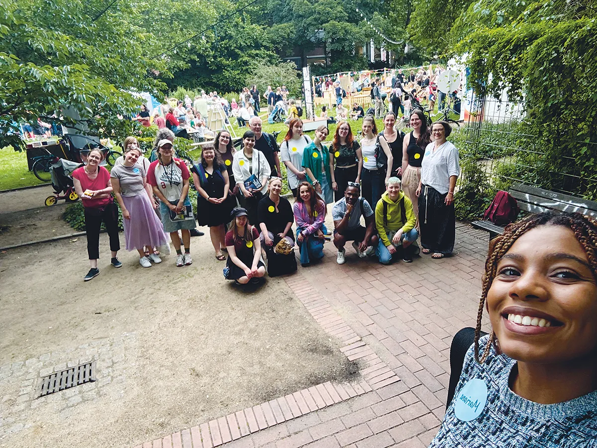 Es würde zu weit führen, hier alle Veranstaltungen aufzuführen, die ich begleiten durfte, aber es gab auch Museums­besuche – zum Beispiel ins MARKK, die Kunsthalle oder die Deichtorhallen – sowie Ausflüge zu Orten wie dem Deutschen Wetterdienst oder dem Rathaus. Zusätzlich besuchte ich Kurse mit Expert*innen wie einen Upcycling-Workshop mit der ­Kostümdesignerin Adriana Peretzki und einen Workshop zu Förderanträgen.